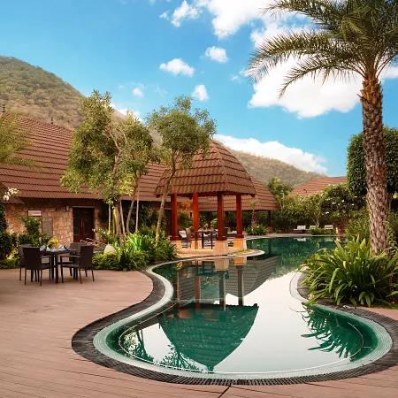 Guarded by the magnificent Aravalli Hills and lush greenery on all sides, Ananta Spa & Resort Pushkar is a blissful getaway in Pushkar. Postcard views, coupled with exceptional services and luxurious facilities define this resort. Spread across an expansive area of 11 acres, we have 52 contemporary cottages, 21 sprawling rooms alongside 12 tents, and 3 tent suites for our guests. We have 3 sophisticated and splendid dining options amid picturesque settings, that will most certainly delight you. Our banquet hall measuring 3150 sq. ft. and a sprawling lawn of 15,290 sq. ft., are perfect venues to host grand weddings, elaborate social events, and corporate functions. A well-equipped recreational room, activity area for kids, an outdoor swimming pool, and a superlative spa and fitness centre at our luxury resort in Pushkar add to making your experience with us a memorable one.